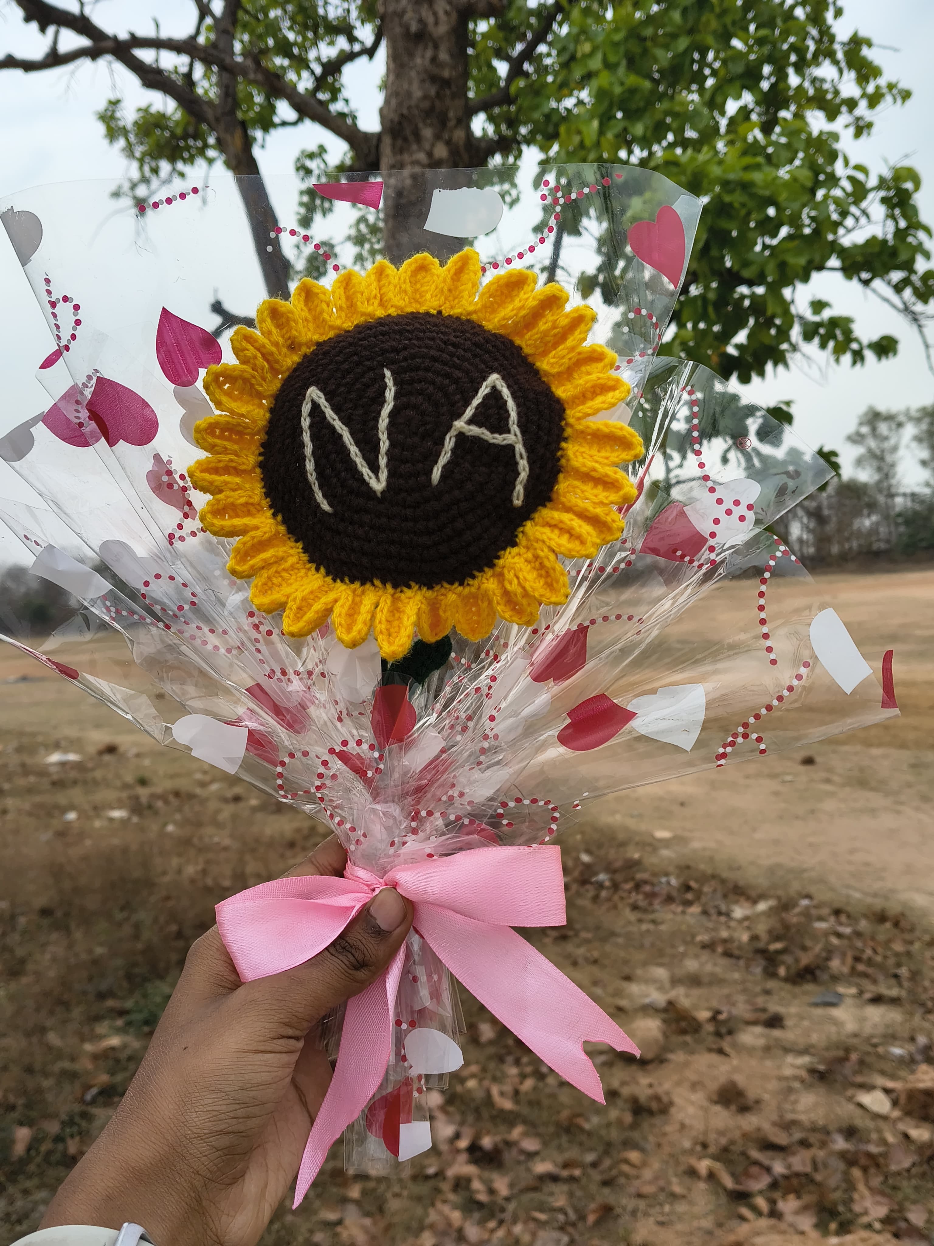 beautiful handmade sunflower bouquet with custom name option. perfect for gifting and special occasions 💛